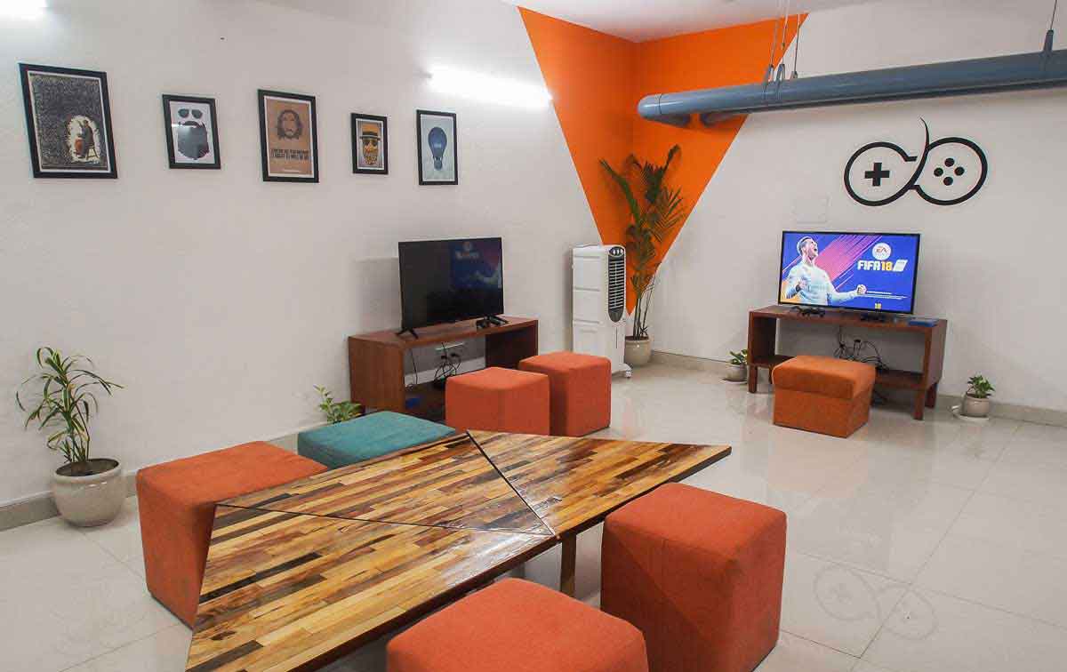 gaming zone, chilling areas, lounging areas, community events, cinema room